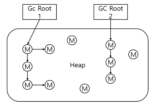 GC Root : 힙( Heap ) 외부에서 접근할 수 있는 변수나 오브젝트